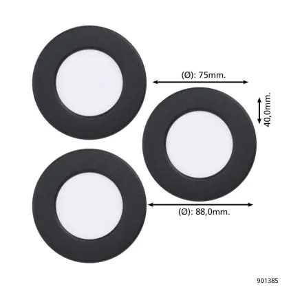 Confezione Multipack 3x Eglo Incasso Faretti Fueva 6 Plastica Nero 11.1W 1350lm - 827-840-865 CCT