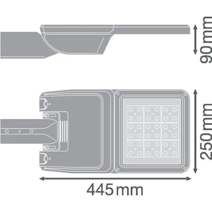 Descrizione Ledvance Illuminazione stradale LED Flex Grande RV25ST Grigio 13W 1650lm 25x145D - 727 Bianco Molto Caldo | IP66 – Asimmetrico
