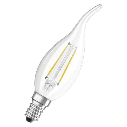 La lampada Osram Classic LED E14 Piegato-tip candle Filamento Chiara 4W 470lm - 827 Bianco Molto Caldo | Dimmerabile - Sostitutiva 40W è il sostituto perfetto per le tue vecchie lampade 40W con attacco a vite piccolo E14 grazie alla sua tecnologia LED. Passare a LED ti offrirà molti vantaggi!