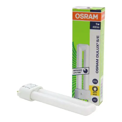 Le Osram Dulux S/E 7W/830 Lumilux Warm White sono lampade fluorescenti compatte che presentano una potenza pari a 7W. Le stesse sono poi dotate di attacco a 4 pin (perni). I vantaggi di tali lampade sono diversi: oltre alla lunga vita di 20.000 ore é importante ricordare l'elevata efficienza luminosa.